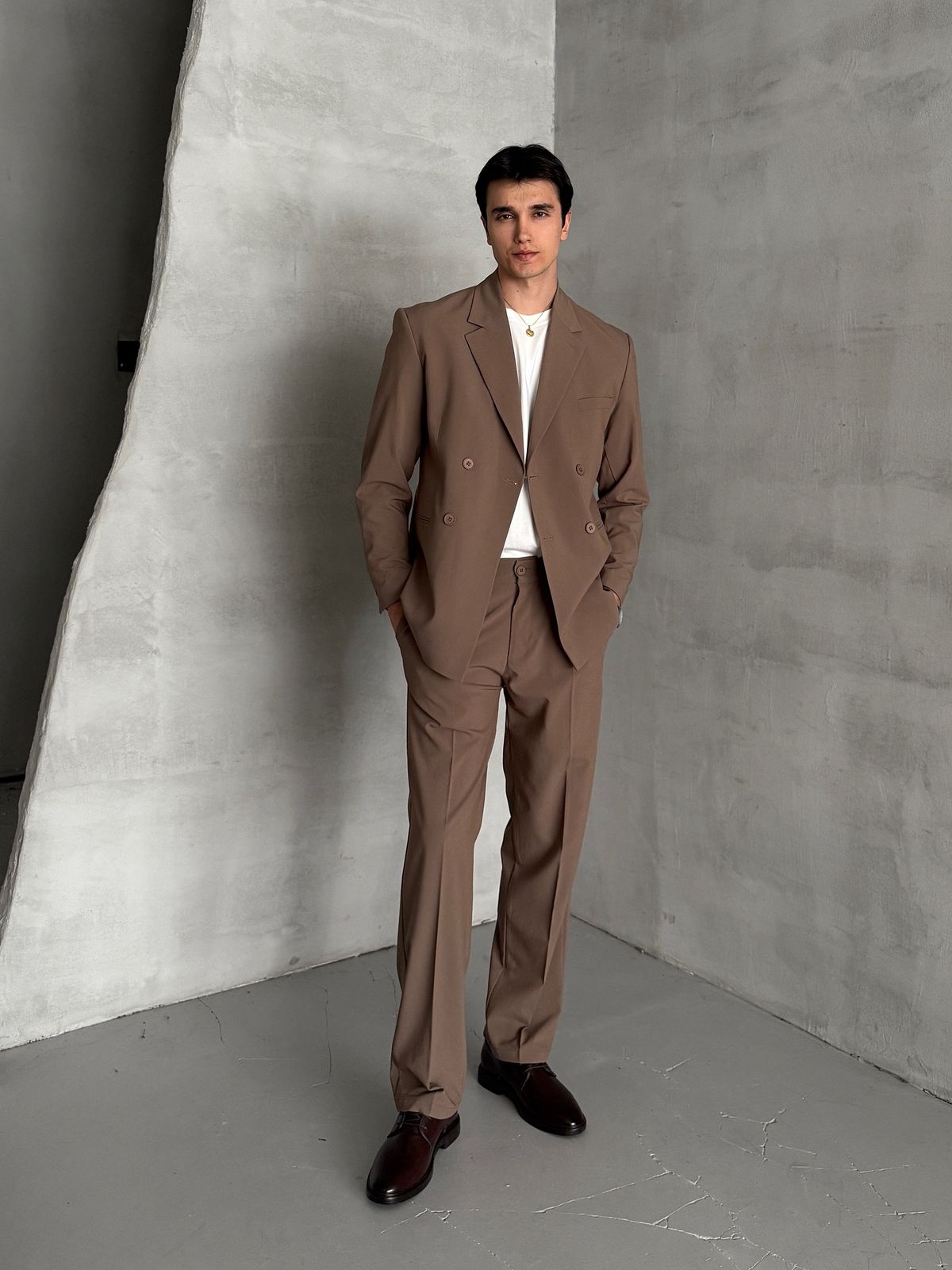 - Класика або casual: костюм або комбінація штанів та сорочки. Класична біла сорочка або з мінімальним принтом підійде найкраще.