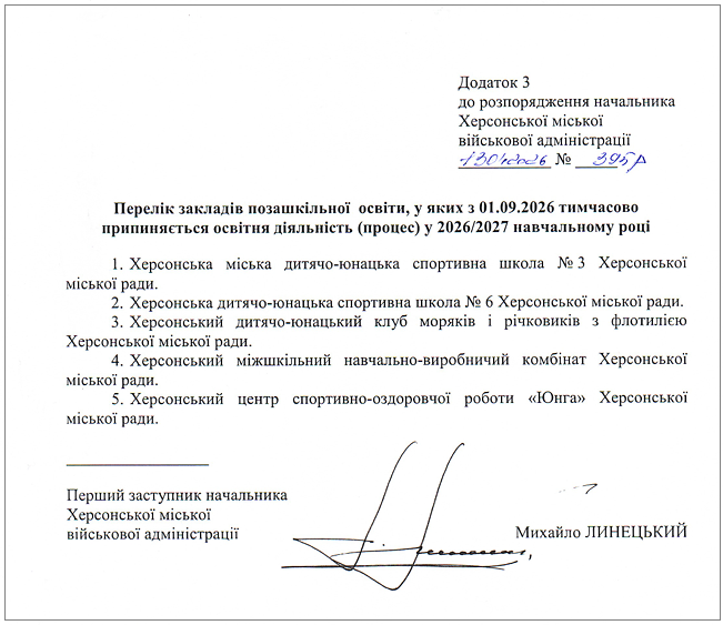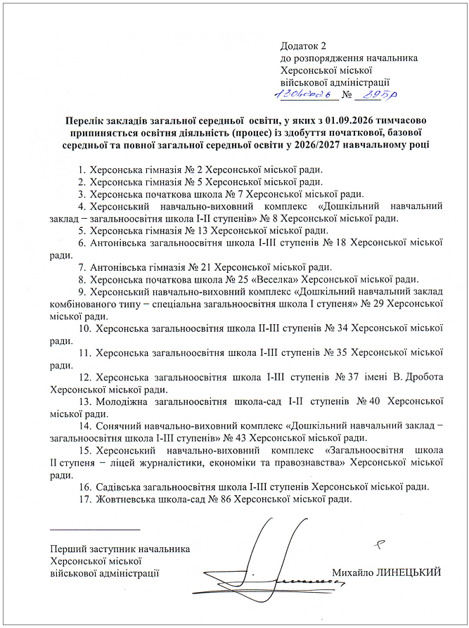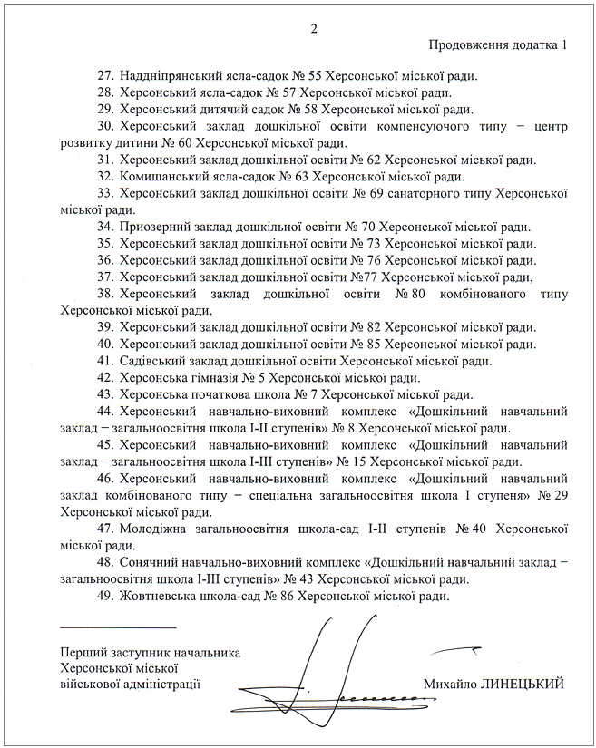 Згідно з Додатком 3 до розпорядження начальника Херсонської міської