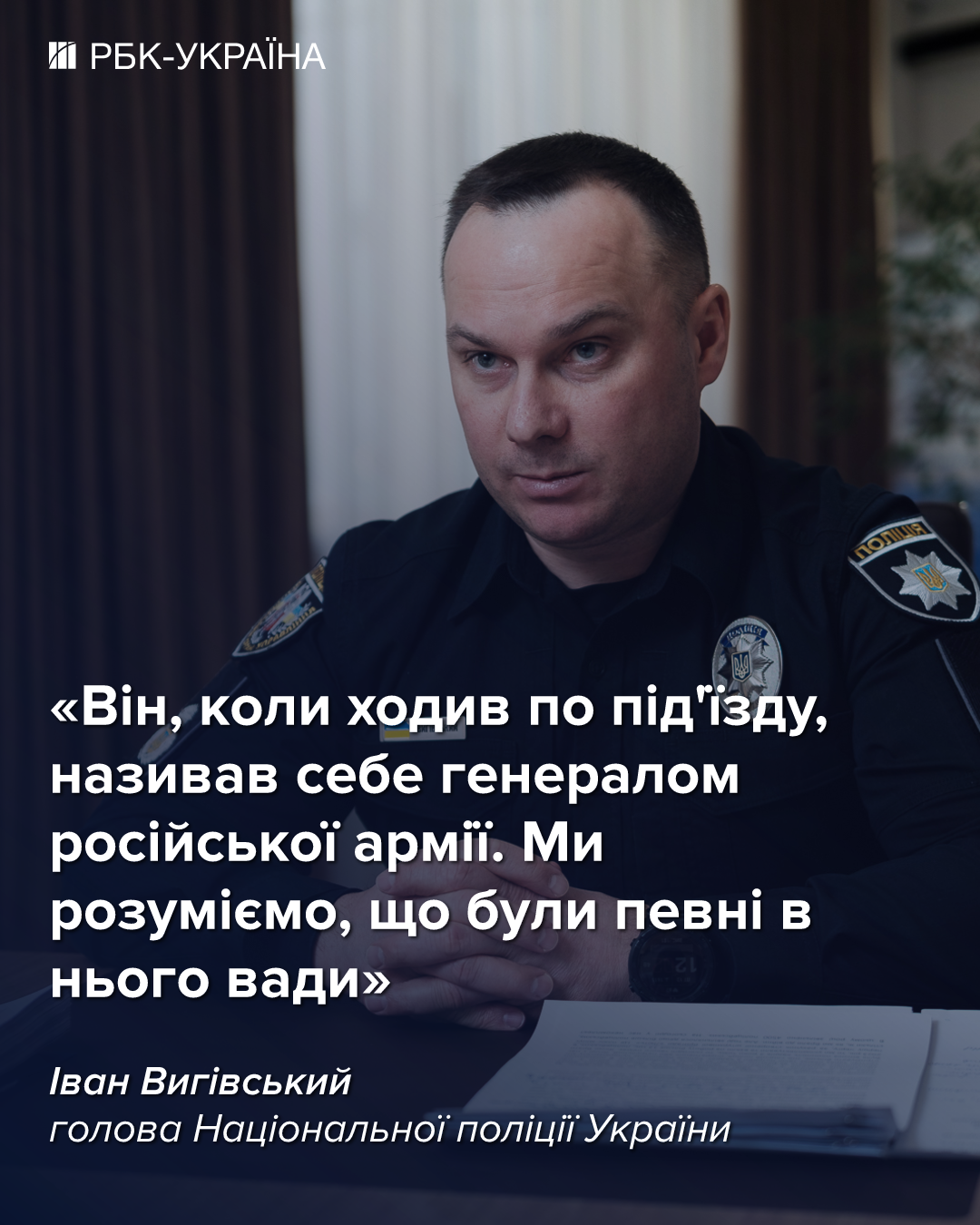 "Ми коли подивилися певні файли у нього в телефоні - він там постійно знімав себе, де він стріляв. Він, коли ходив по під'їзду, називав себе генералом російської армії. Ми розуміємо, що були певні в нього вади", - сказав Вигівський.