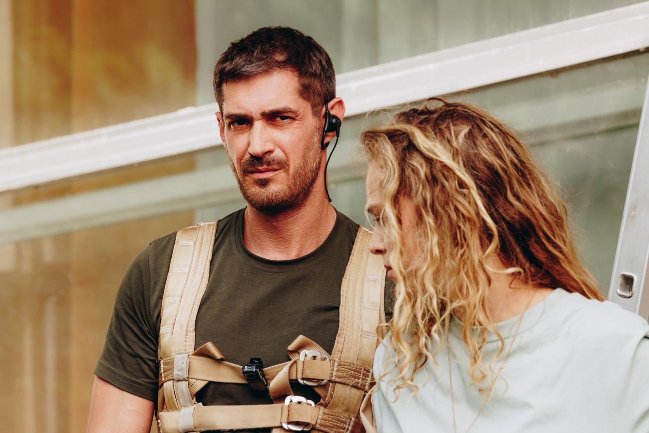 За сюжетом, Стрельніков та Творонович зривалися з висоти третього поверху на обірваних тросах. Робота над цим фрагментом тривала три дні. До процесу залучили важку спецтехніку, десятки акторів масовки та каскадерів.