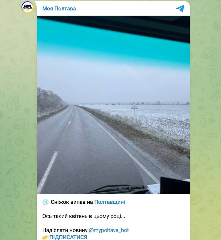 "Сніжок випав на Полтавщині", - повідомили у Telegram-каналі "Моя Полтава".