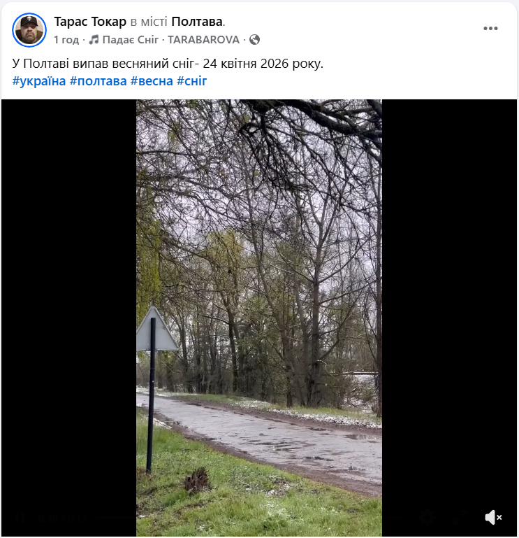 Сніг 24 квітня у Полтаві (скриншот: facebook.com/tarastokar)