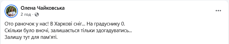 Сніг 24 квітня у Харкові (фрагмент публікації: facebook.com/elena.cvetocnaa.cajkovskaa)