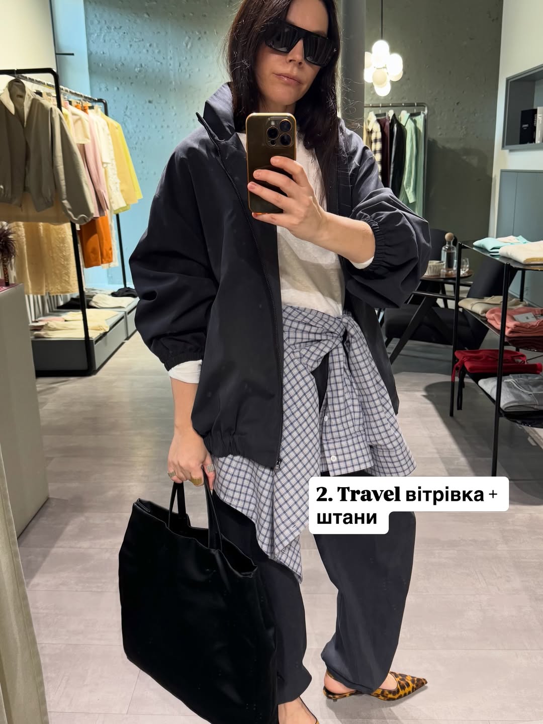 Ця формула поєднує практичність і стиль. Вітрівка відповідає за функціональність, тоді як сорочка в клітинку додає образу характеру.