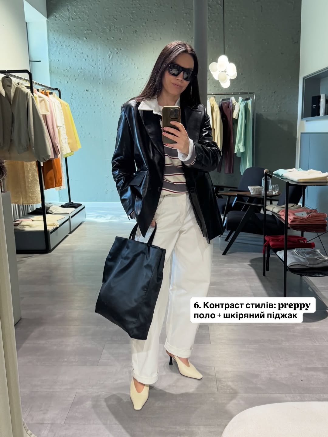 Контраст стилів: Preppy поло + шкіряний піджак